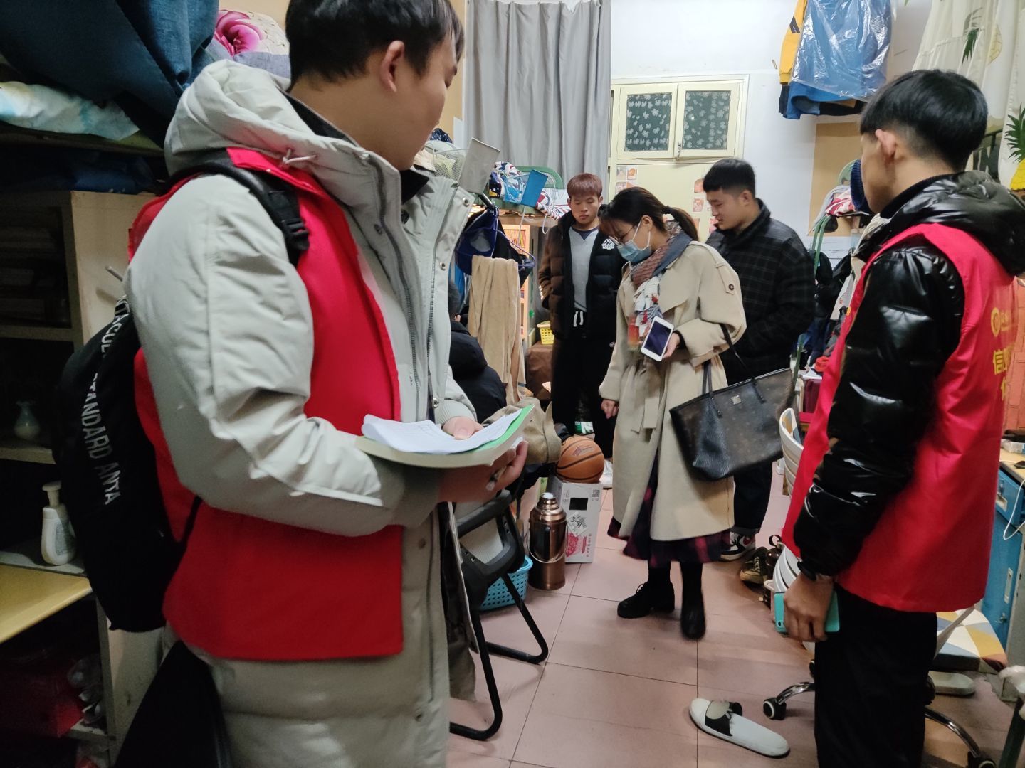 为了贯彻落实我校安全事故隐患大排查活动,深入开展安全隐患整治工作,提高学生安全防范意识。在hg皇冠官网副处级辅导员柴九昌的组织下,12月7日晚上,辅导员程俊辉、赖梦玥、龙慧杰以及部分学生会成员对我院150余个宿舍进行了细致排查。